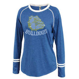 Bulldogs Royal Ringer Stripe Crew Shirt w/ Bulldogs SPANGLE Design on Front.