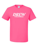 Drew Volleyball NEON PINK - JERZEES - Dri-Power® 50/50 T-Shirt - 29MR w/ Text Logo Design on Front.