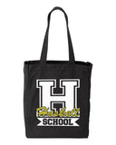 HASKELL School Black 10 Ounce Gusseted Cotton Canvas Tote w/ HASKELL School "H" Logo on Front.