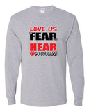 Hazleton Area Cougars - Sport Gray JERZEES - Dri-Power® Long Sleeve 50/50 T-Shirt - 29LSR w/ LOVE US Design on Front.