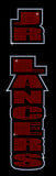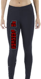 Jr Lancers Competition Cheer Black Legging Pants w/ 2 Color Spangle Logo down Leg.