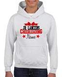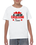 Jr Lancers Competition Cheer Heavy Cotton White Shirt w/ Cheerleading 2 Color Design on Front.