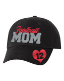 Football Mom Glitter Hat with Option Player # Heart Graphic