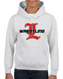 Lakeland Wrestling White Heavy Blend Shirt w/ Lakeland Wrestling Old English "L" logo on Front.