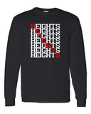Heights Black Long Sleeve Tee w/ Heights Crossword Design in Red & White on Front.