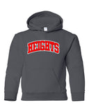 Heights Charcoal Hoodie w/ Heights ARC Design in Red & White on Front.