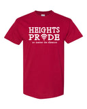 Heights Red Short Sleeve Tee w/ Heights Pride Design in White on Front.