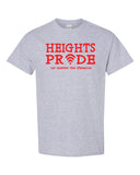 Heights Sport Gray Short Sleeve Tee w/ Heights Pride Design in Red on Front.