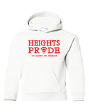 Heights White Hoodie w/ Heights Pride Design in Red on Front.