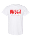 Heights White Short Sleeve Tee w/ Heights Pride Design in Red on Front.