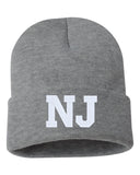 NJ State Abbreviation Embroidered Cuffed Beanie Hat