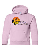 Riverview Gymnastics Light Pink Hoodie w/ Full Color Sun Design on Front.