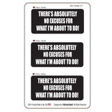 There's Absolutely No Excuse For What I'm About To Do (3 pack) 3" x 1.5" Hard Hat-Helmet Full Color Printed Decal