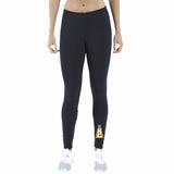 Wanaque Cheer Black Leggings w/ WC Megaphone Design Front of Left Ankle.