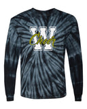 WANAQUE CHEER Cyclone Tye Dye Long Sleeve Tee w/ W-CHEER Logo on Front.
