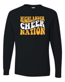 West Milford Cheerleading - Black Long Sleeve Tee w/ Highlander Cheer Nation Design on Front.