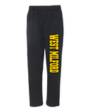 West Milford Fencing Black Open Bottom Sweat Pants w/ Design Down Left Leg.