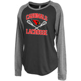 Westwood Cardinals Black Jersey Raglan Crewneck Shirt w/ 2 color Cardinals Crossed Sticks Design on Front.