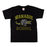 WANAQUE Black Short Sleeve Tee w/ WANAQUE School "Old Style" Logo in Spangle on Front. STYLE #2